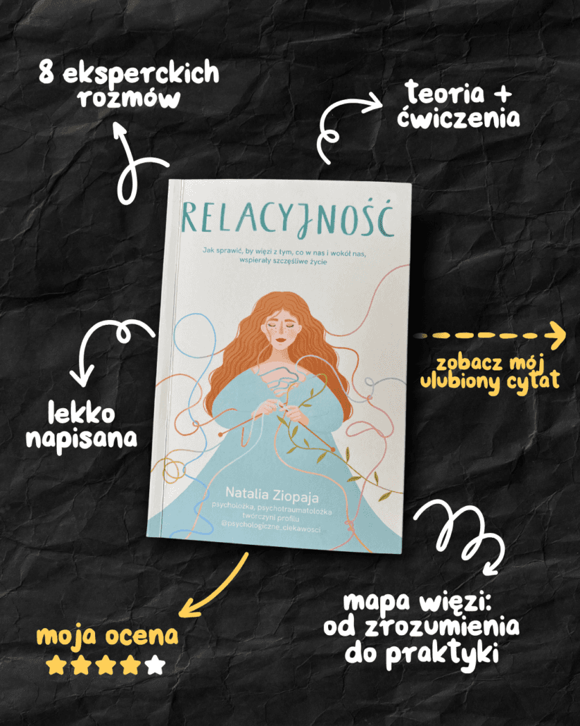 Link do książki: https://www.empik.com/relacyjnosc-jak-sprawic-by-wiezi-z-tym-co-w-nas-i-wokol-nas-wspieraly-szczesliwe-zycie-natalia-ziopaja,p1645076731,ksiazka-p